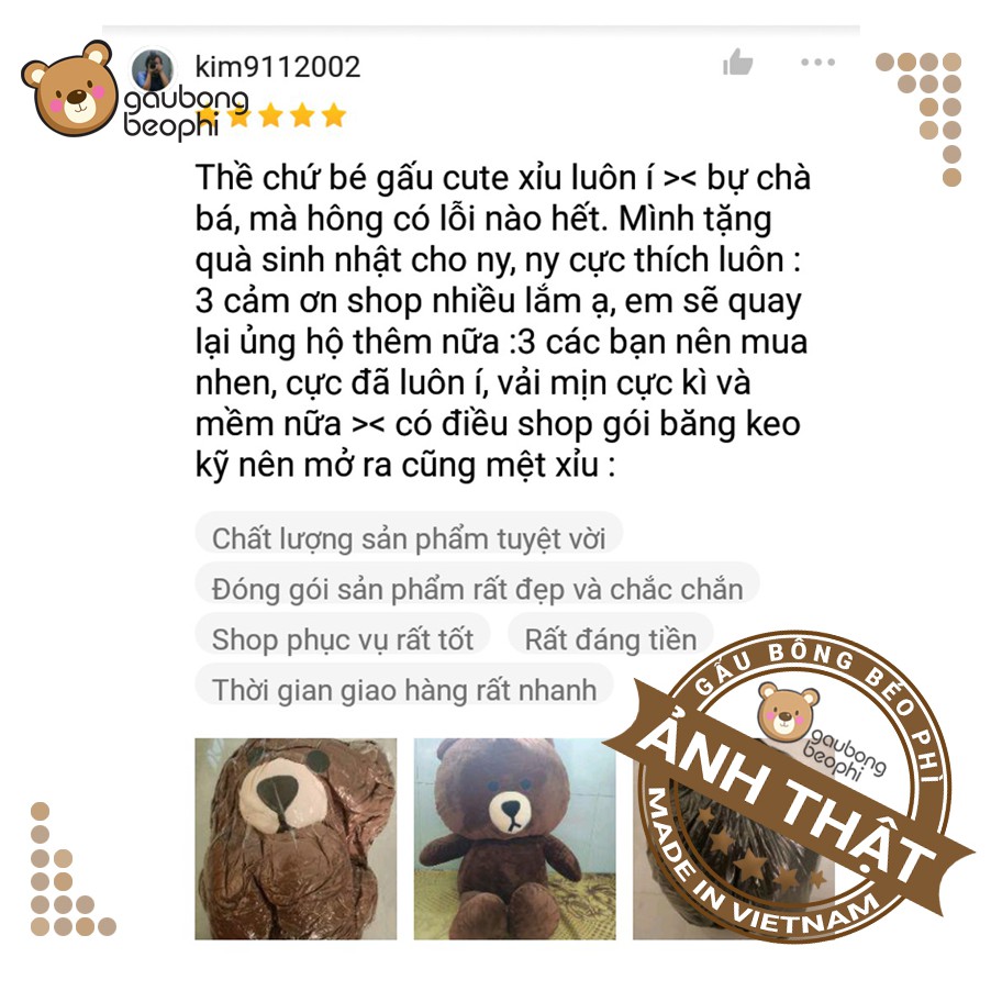 Gấu brown khổ vải 1m màu socola shop gấu bông béo phì
