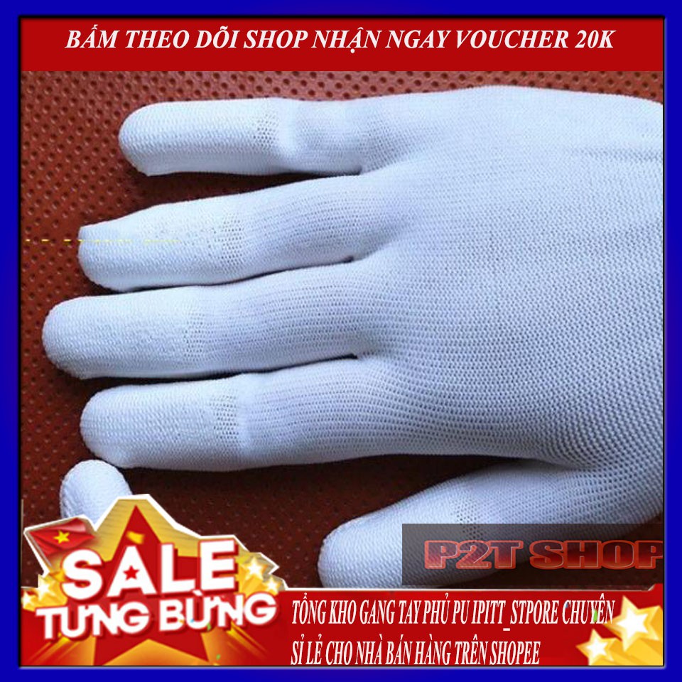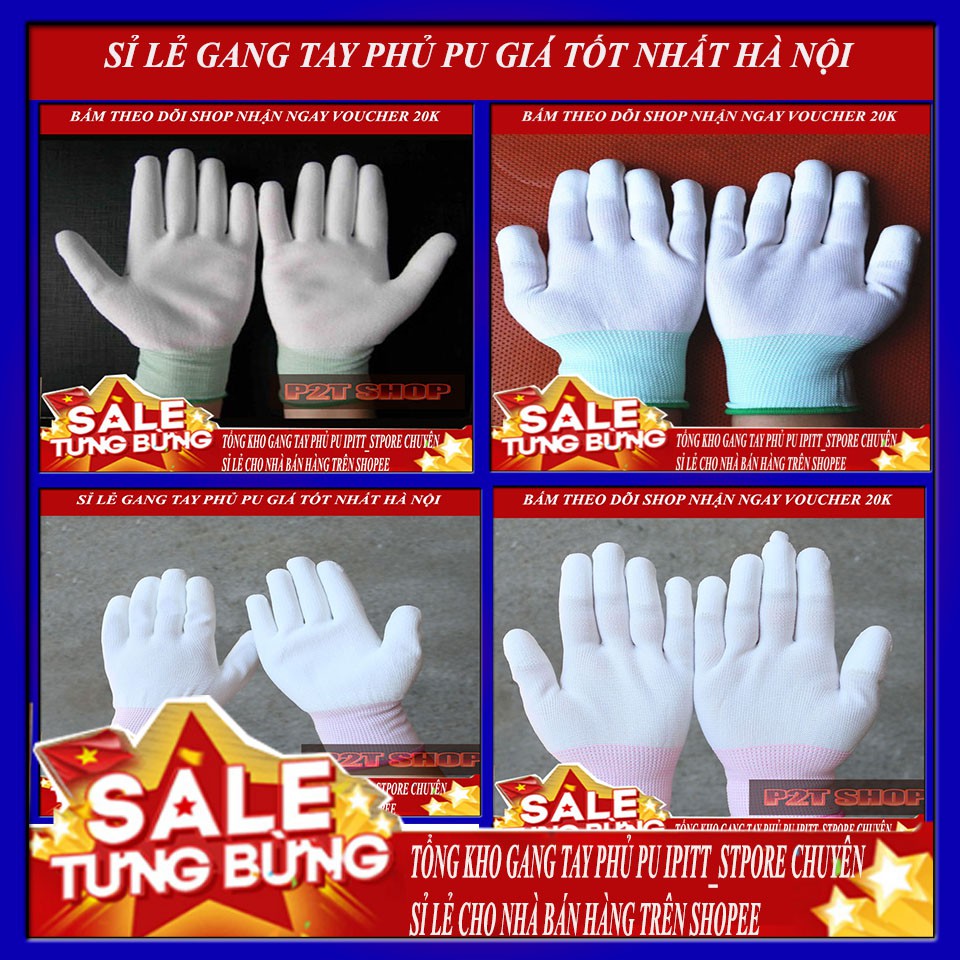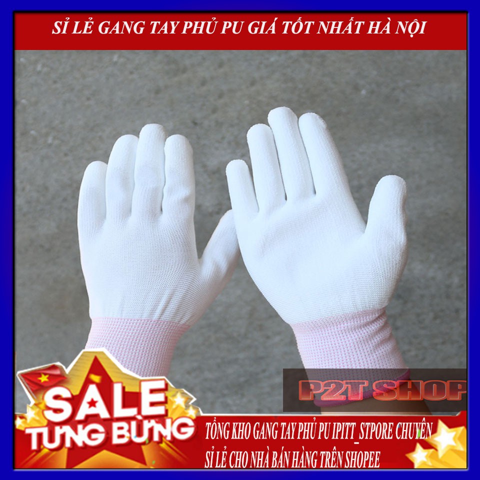Găng Tay Lao Động Trắng Phủ PU Ngón Tay PiHouse