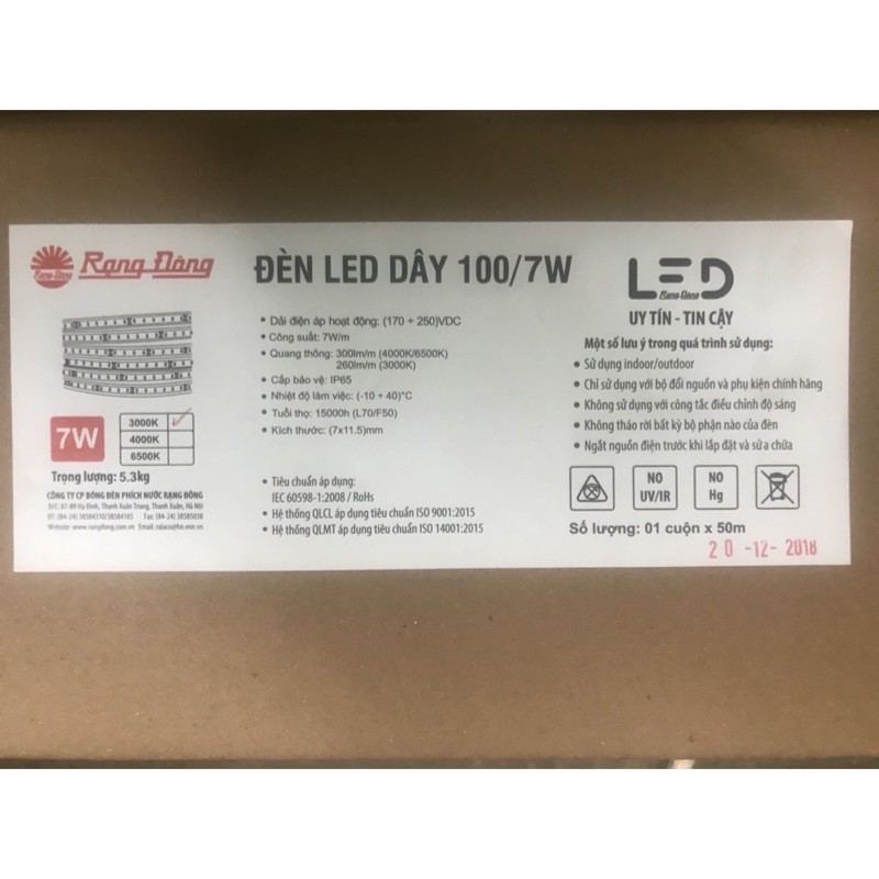 [ Siêu khuyến mại ] Led dây 100/7W rạng đông mua 20m trở lên tặng 1 bộ nguồn DC