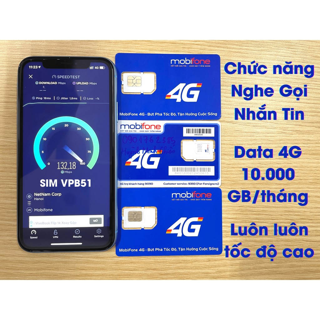 SIM 4G (VPB51) KHÔNG GIỚI HẠN - 1 TỶ GB TỐC ĐỘ CAO 1 NGÀY Y/C CÓ CMT HN