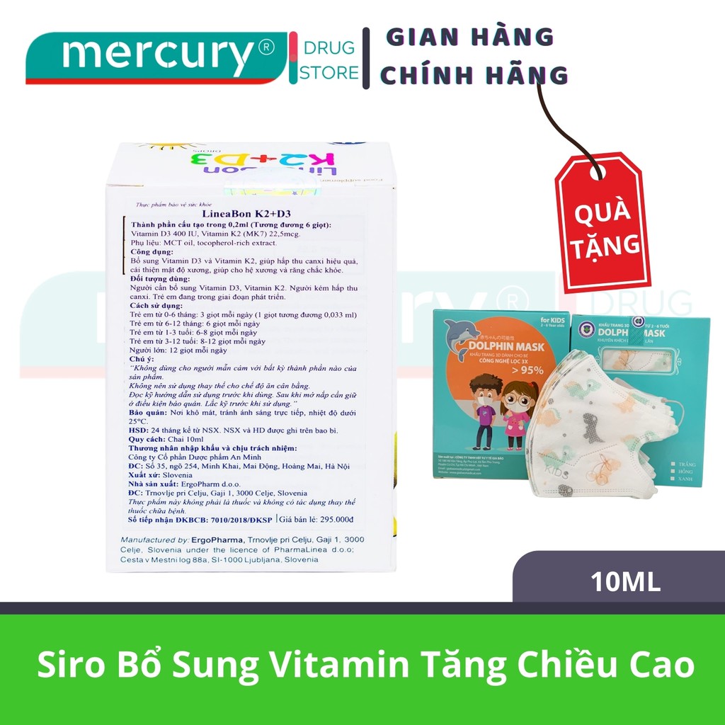 Siro Bổ Sung Vitamin Tăng Chiều Cao Cho Bé Lineabon K2+D3 Ergopharm 10Ml