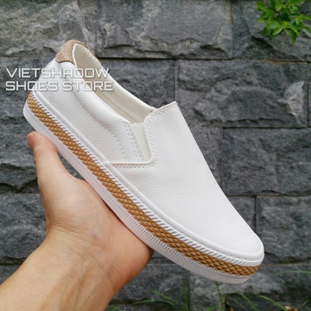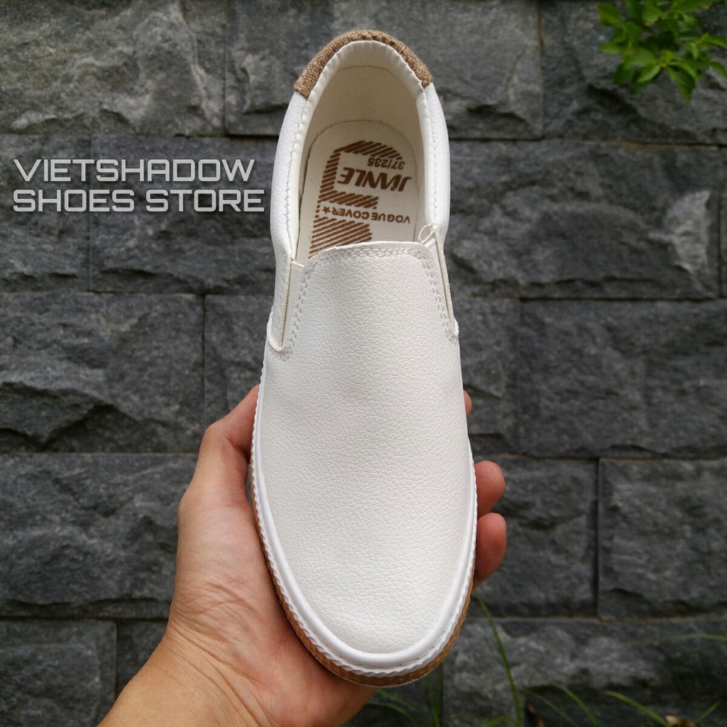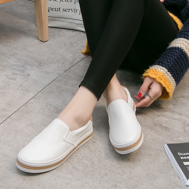 Slip on da nữ - Giày lười da nữ - chất liệu da PU 2 màu đen và trắng - Mã SP 6075