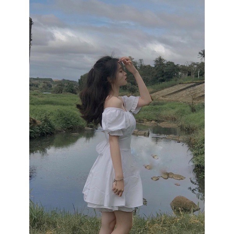 Váy Cổ Vuông Rúm Ngực Thắt Nơ Lưng Ulzzang, Đầm Dự Tiệc Cực Xinh Nhiều Màu