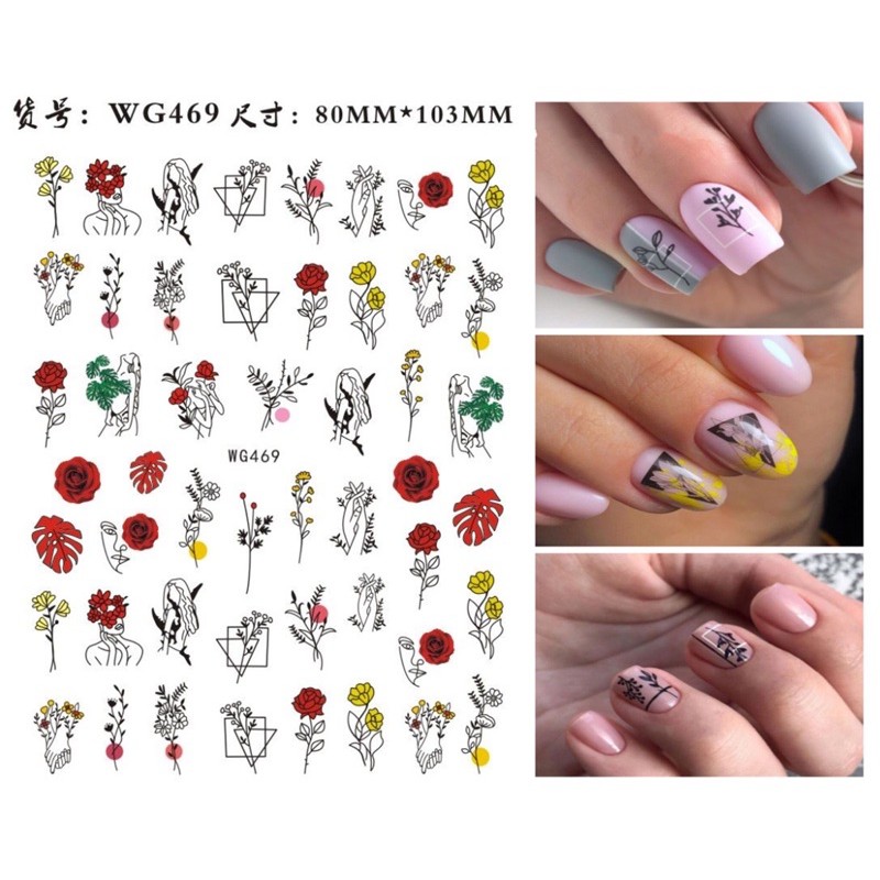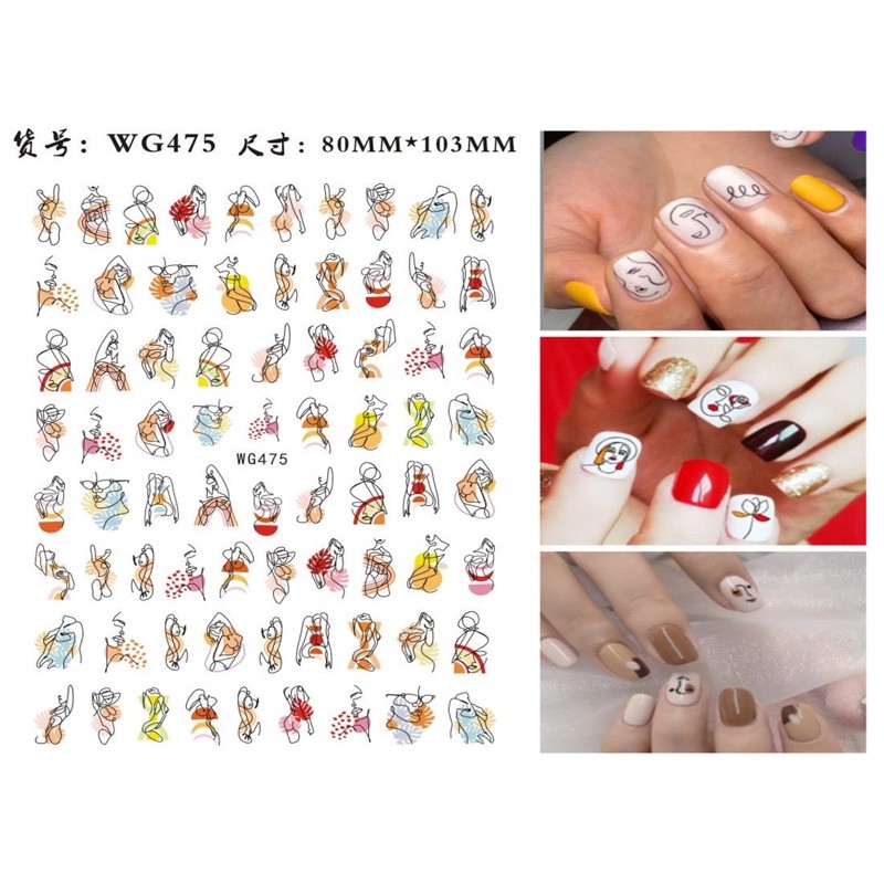 Sticker hình dán móng hoạ tiết mặt người trừu tượng minimalism, abstract, aesthetic style Hàn Quốc trang trí móng nail
