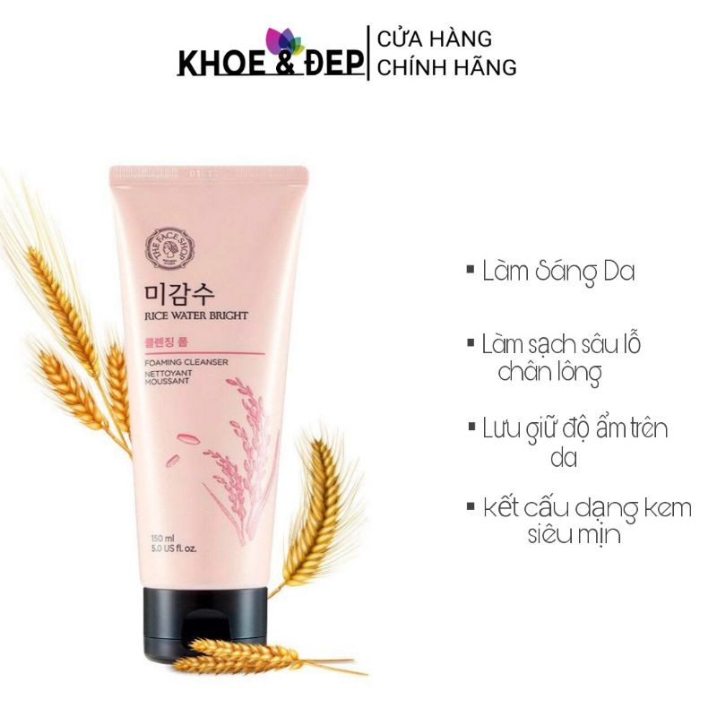 Sữa Rữa Mặt Gạo Làm Sáng Da THEFACESHOP ⭐CHÍNH HÃNG⭐ RICE WATER BRIGHT CLEANSING FOAM 150ml