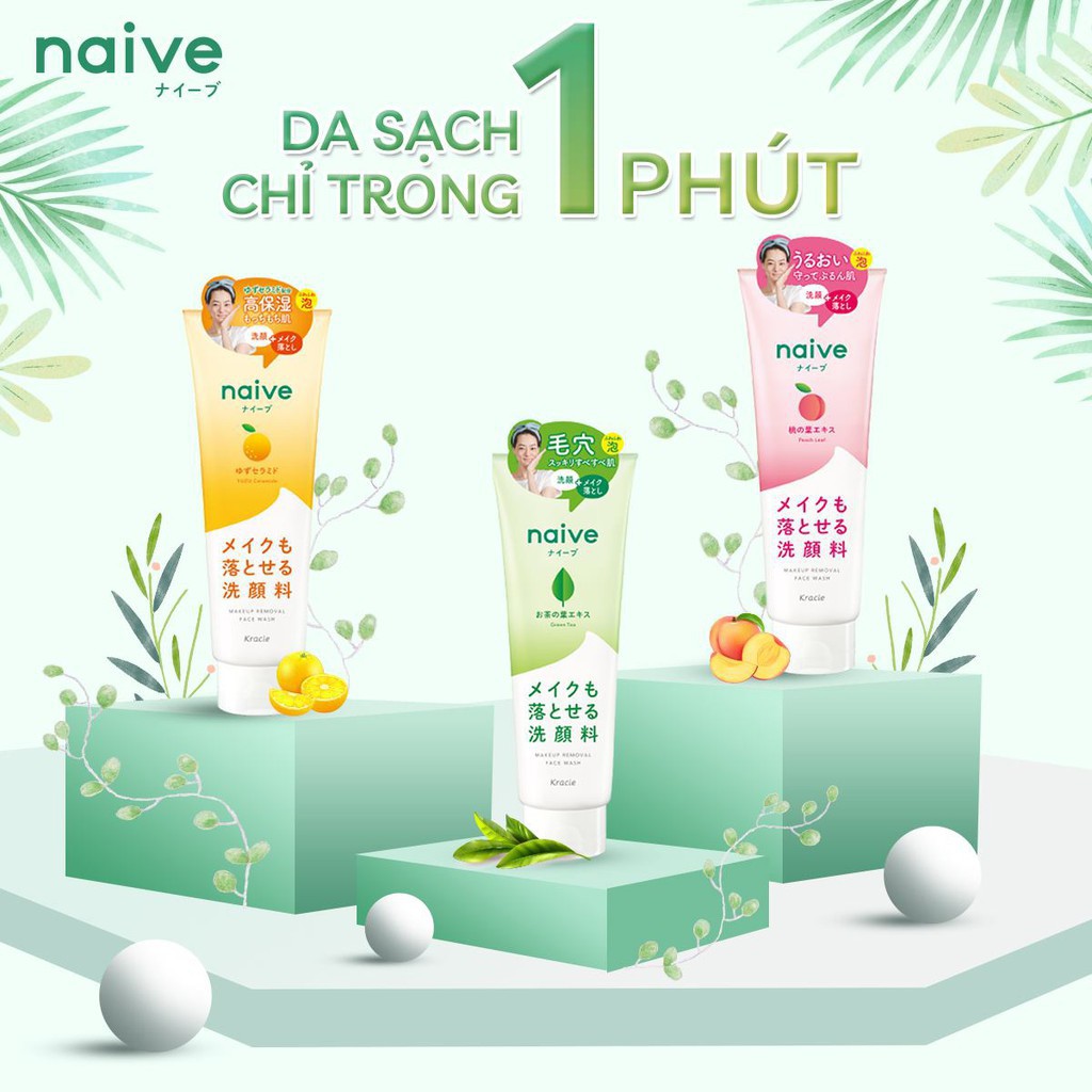 Sữa Rửa Mặt Naive Nhật Bản Chiết Xuất Trà Xanh,Lô Hội Giúp Làm Sạch Nhờn, Sáng Da,Cấp Ẩm Cao,Chống Lão Hóa Da 130g