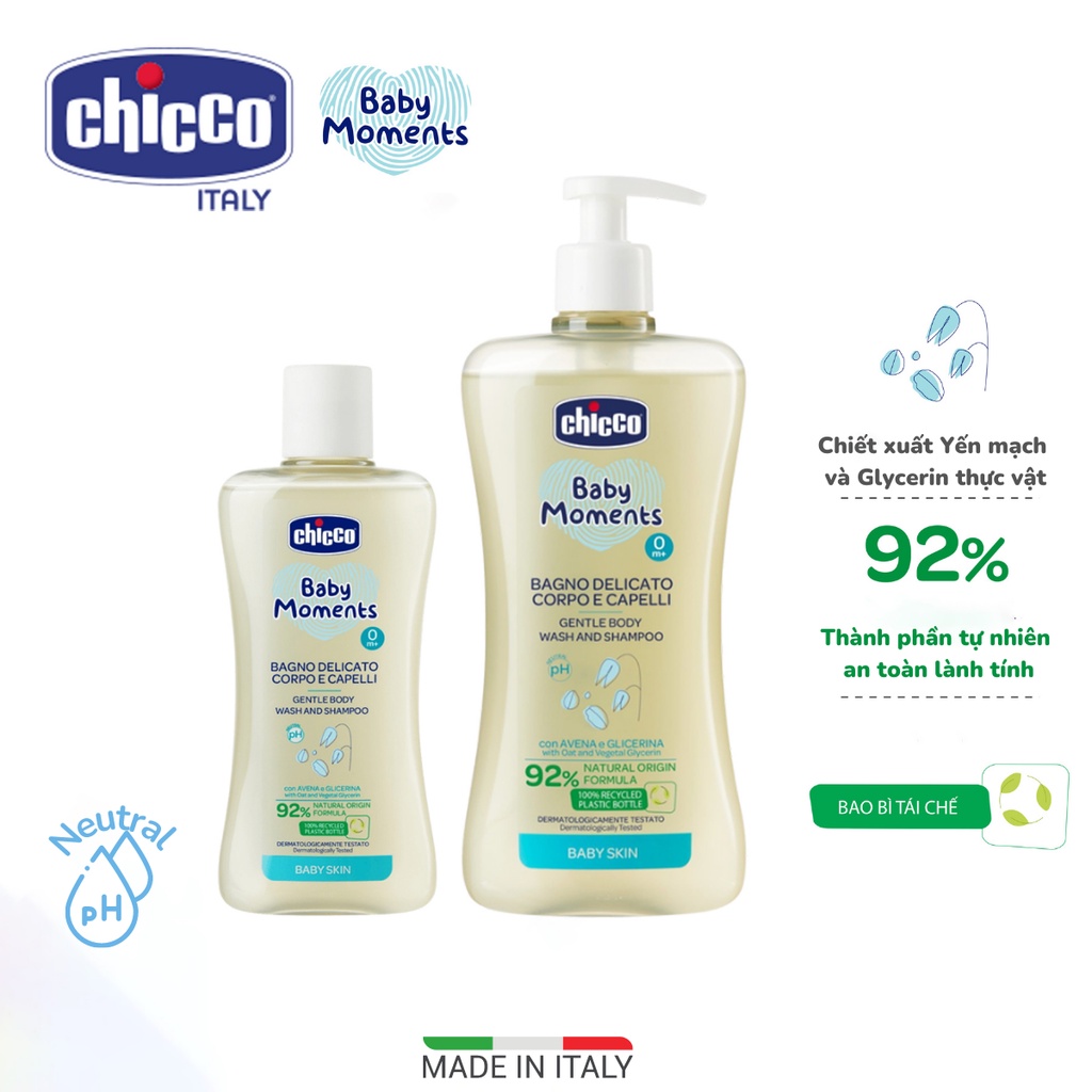 Sữa tắm gội yến mạch CHICCO cho bé sơ sinh, sữa tắm yến mạch cấp ẩm da trẻ em - Monnie Kids