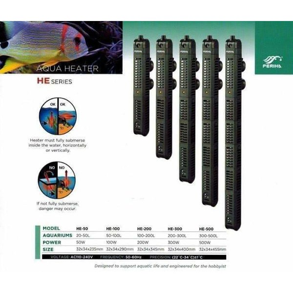 Sưởi Ấm Periha HE Kèm Vỏ Cách Nhiệt - Sưởi Periha HE-50W HE100 HE200 HE300 HE500 Cho Bể Cá