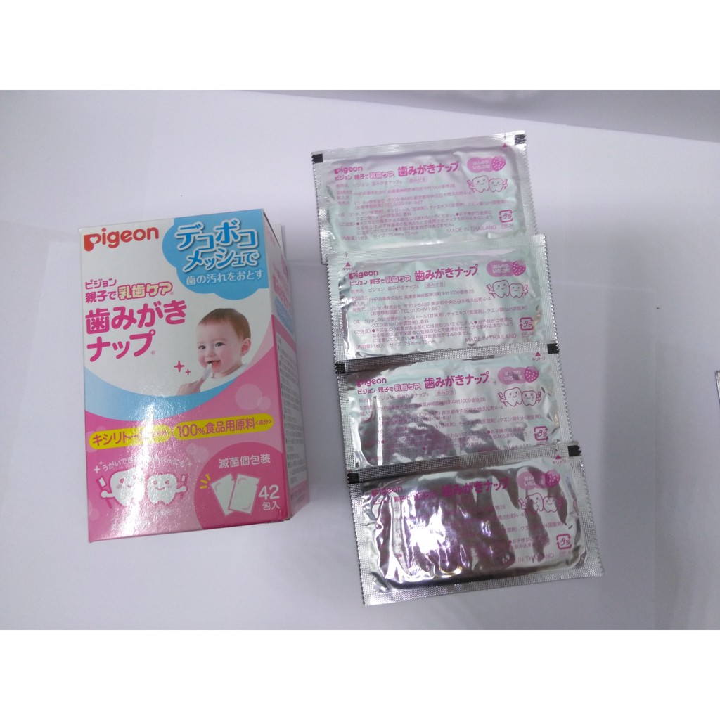 (Tách lẻ 5 miếng) Khăn lau răng, lau nướu Pigeon Vị Dâu Dành Cho Bé Từ 6m+