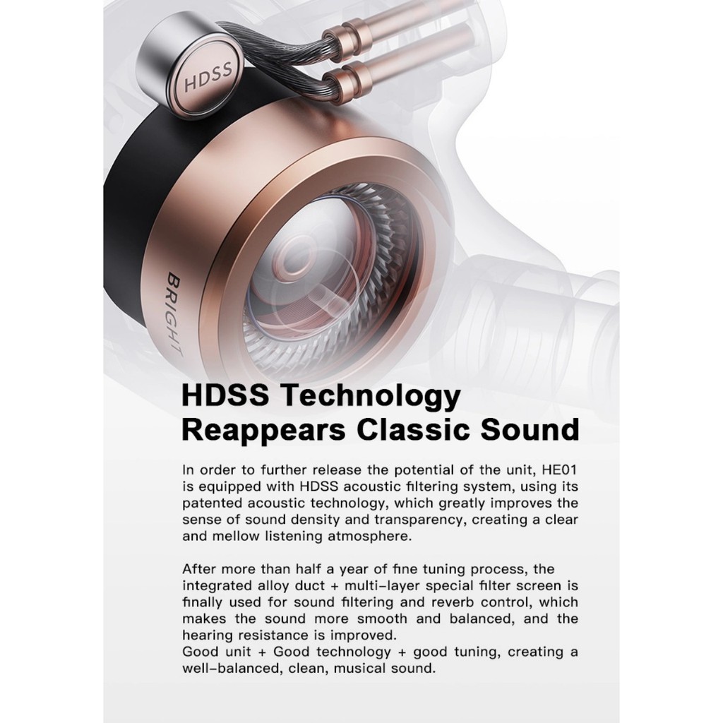 Tai nghe cao cấp WHIZZER HE01, Chuẩn Hires, Công nghệ âm thanh HDSS cho trải nghiệm âm thanh cực tốt