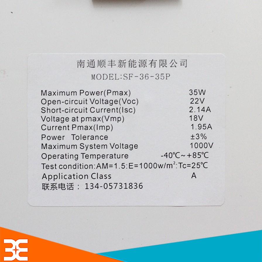Tấm Pin Năng Lượng Mặt Trời 18V 35W Polysilicon (Khung Nhôm) - 518x457x17mm ( BH : 1 tháng )