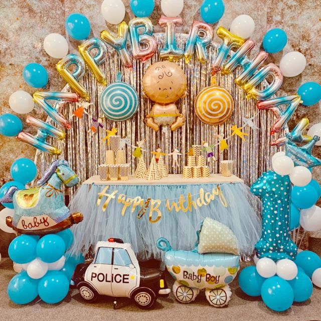 [ Tặng Quà ] Sét Bóng Sinh Nhật Thôi Nôi Cho Bé Trai 1 tuổi con CHUỘT, heo... ( tặng bơm + keo )