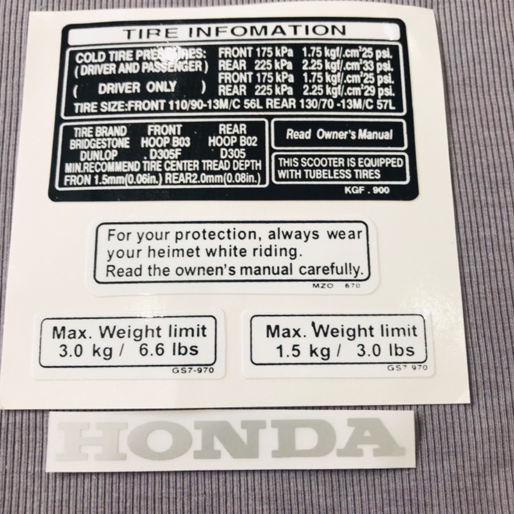 Tem thông số cho xe Sh