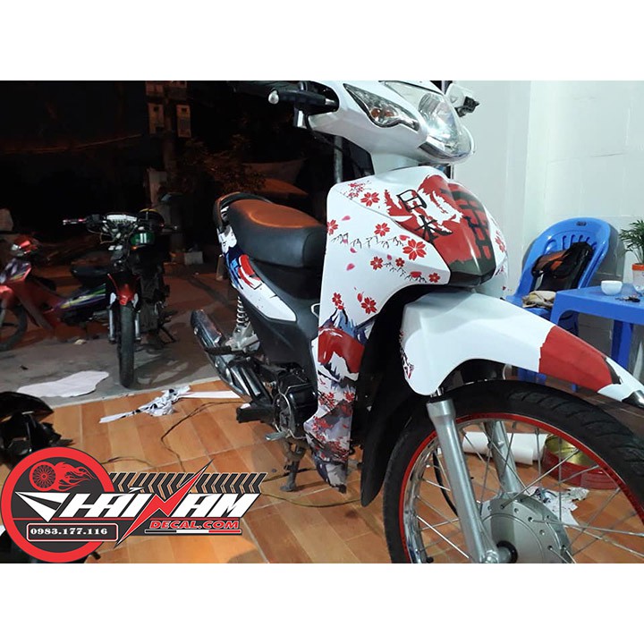 Tem Trùm WAVE Alpha Trắng Đỏ Hoa Đào