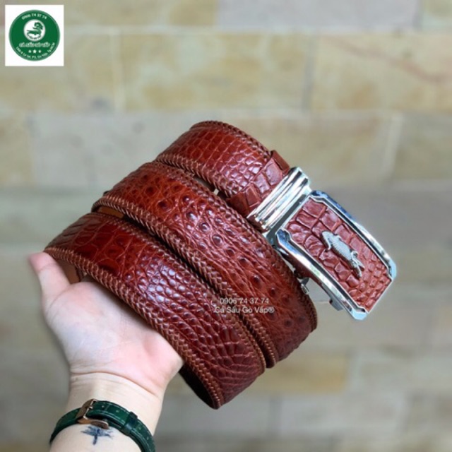 Thắt Lưng Da Cá Sấu 4cm Dan Tay Nâu Đỏ - Cá Sấu Gò Vấp