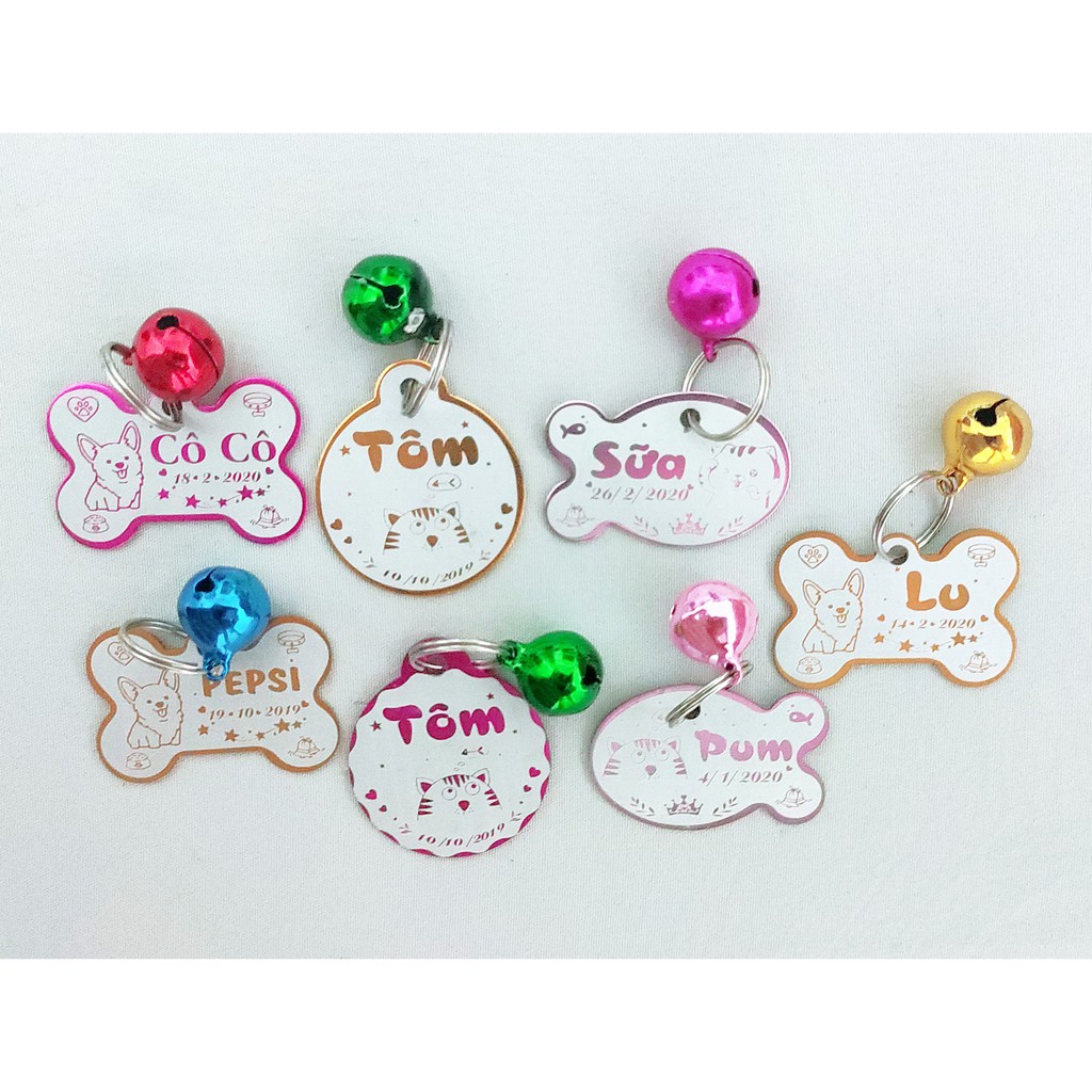 Thẻ tên thú cưng cho chó mèo nhiều màu sắc ( Tặng kèm chuông )