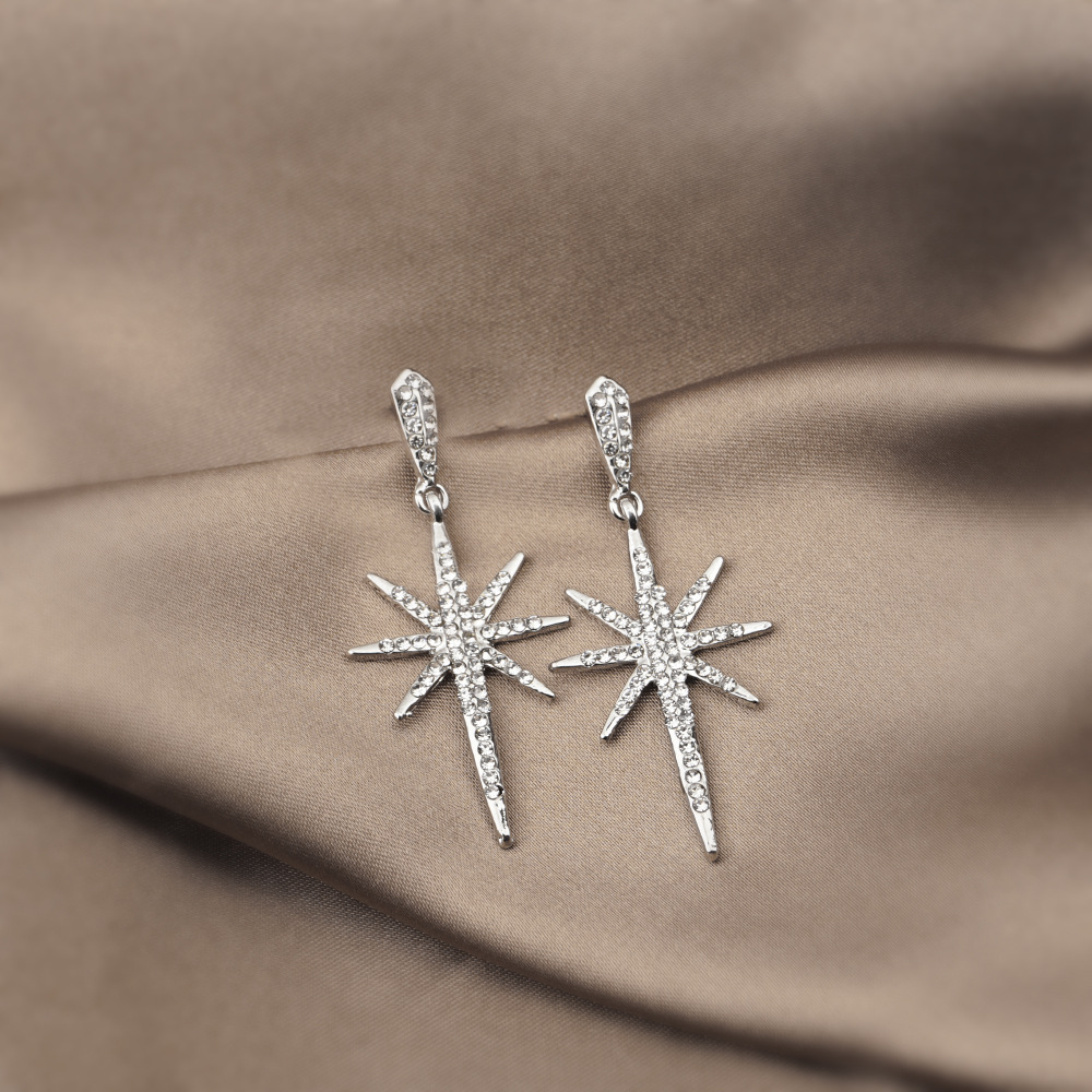 Khuyên tai dáng dài mạ bạc 925 hình ngôi sao bát giác