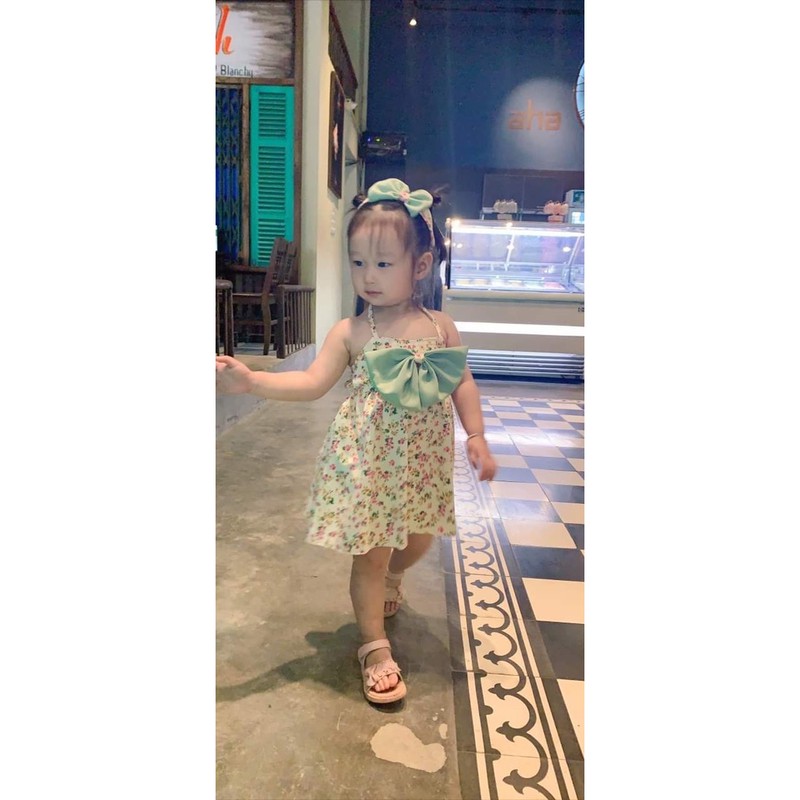 Thời trang cho bé, bộ quần áo yếm nơ xanh hoa nhí cho bé từ 4kg-20kg