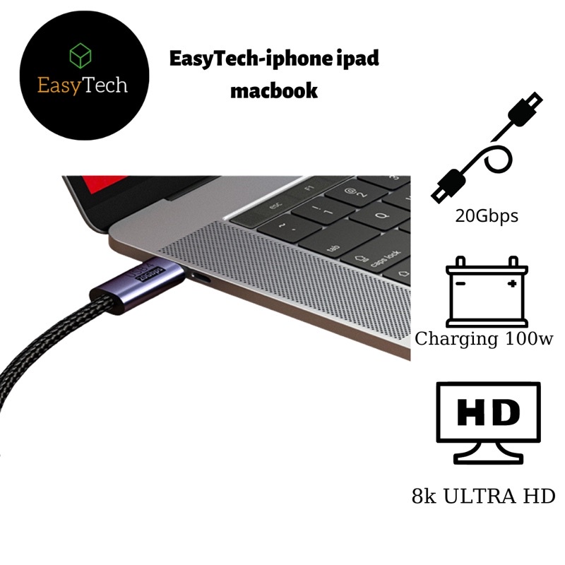thunderbolt 3, cáp usb 4 bọc dù tốc độ 20gbps xuất màn 8k
