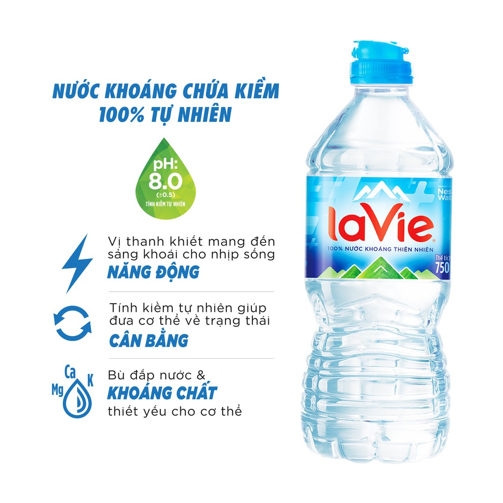 Thùng 12 chai Nước kiềm tự nhiên La Vie Nắp Thể Thao chai 750ml/chai