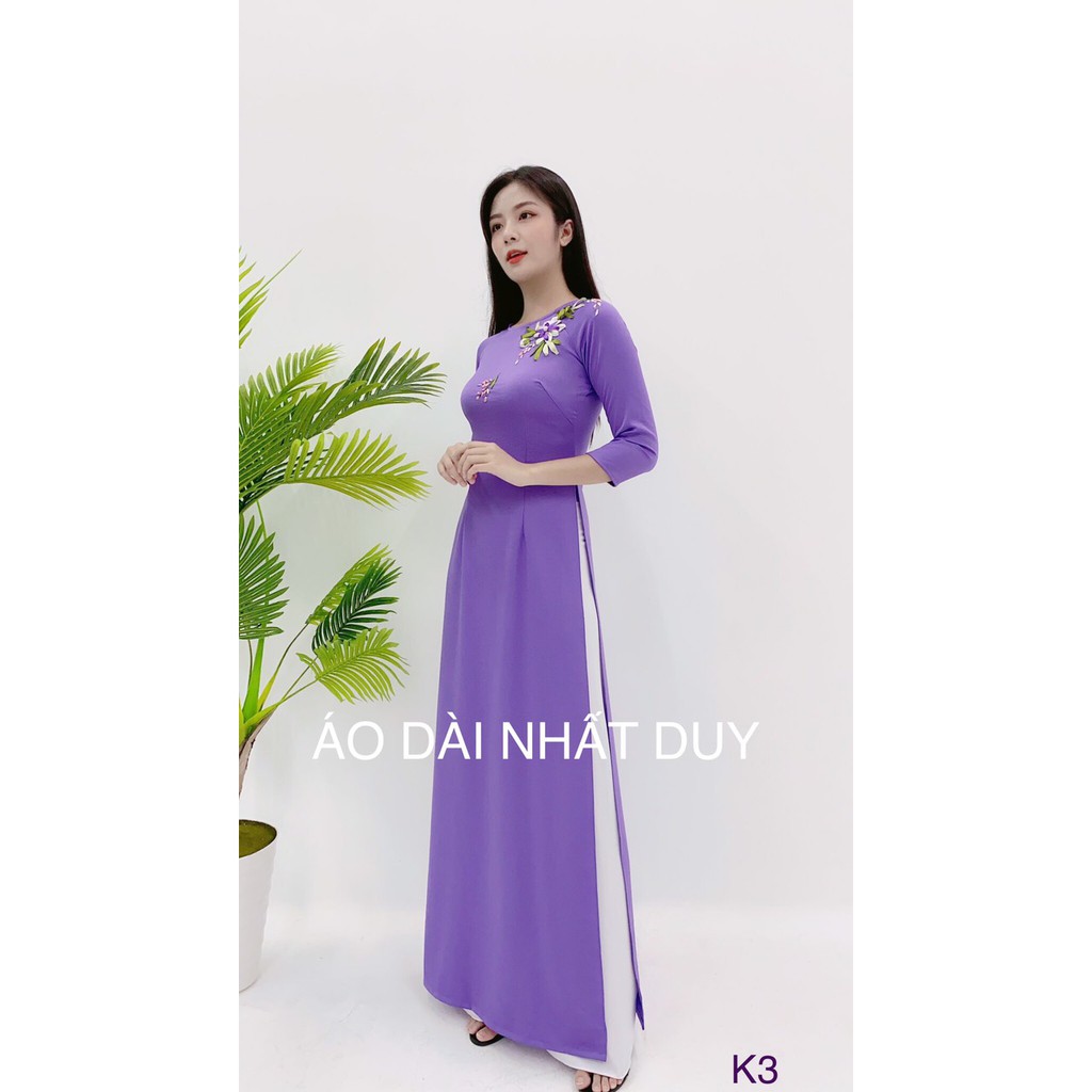 TÍM MỘNG MƠ, ÁO DÀI TRUYỀN THỐNG THÊU RUY BĂNG CHẤT LỤA TÔ CHÂU CA CẤP GIÁ SIÊU RẺ-K3