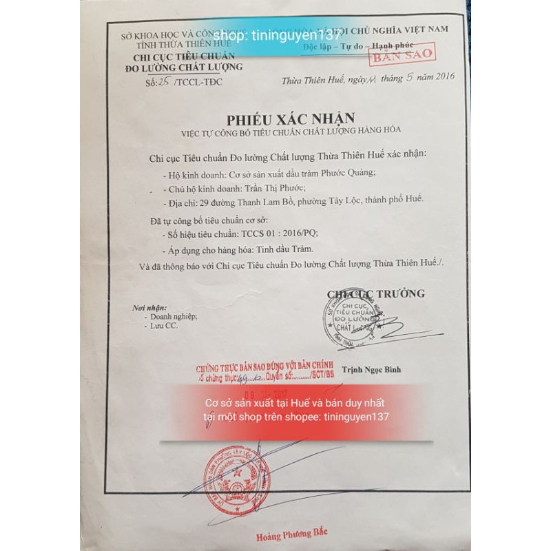 Tinh dầu tràm Huế nguyên chất loại đặc biệt 50ml chai tròn Phước Quảng