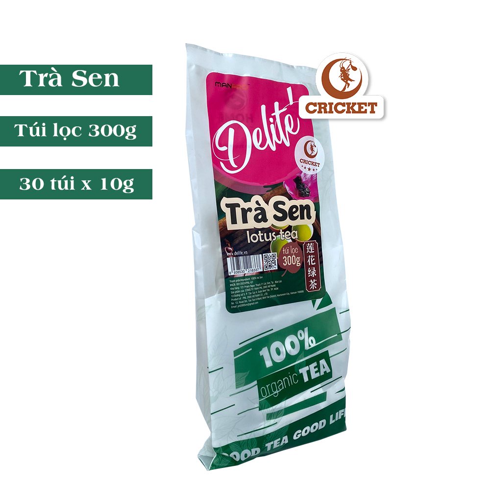 Trà Sen Túi lọc Cao Cấp Delite 300g - trà ngon thư giãn 100% từ hoa sen tươi, Nguyên Liệu Trà Sữa CRICKET