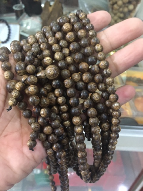 Trầm hương sánh ghép 108 hạt 8mm thơm sống