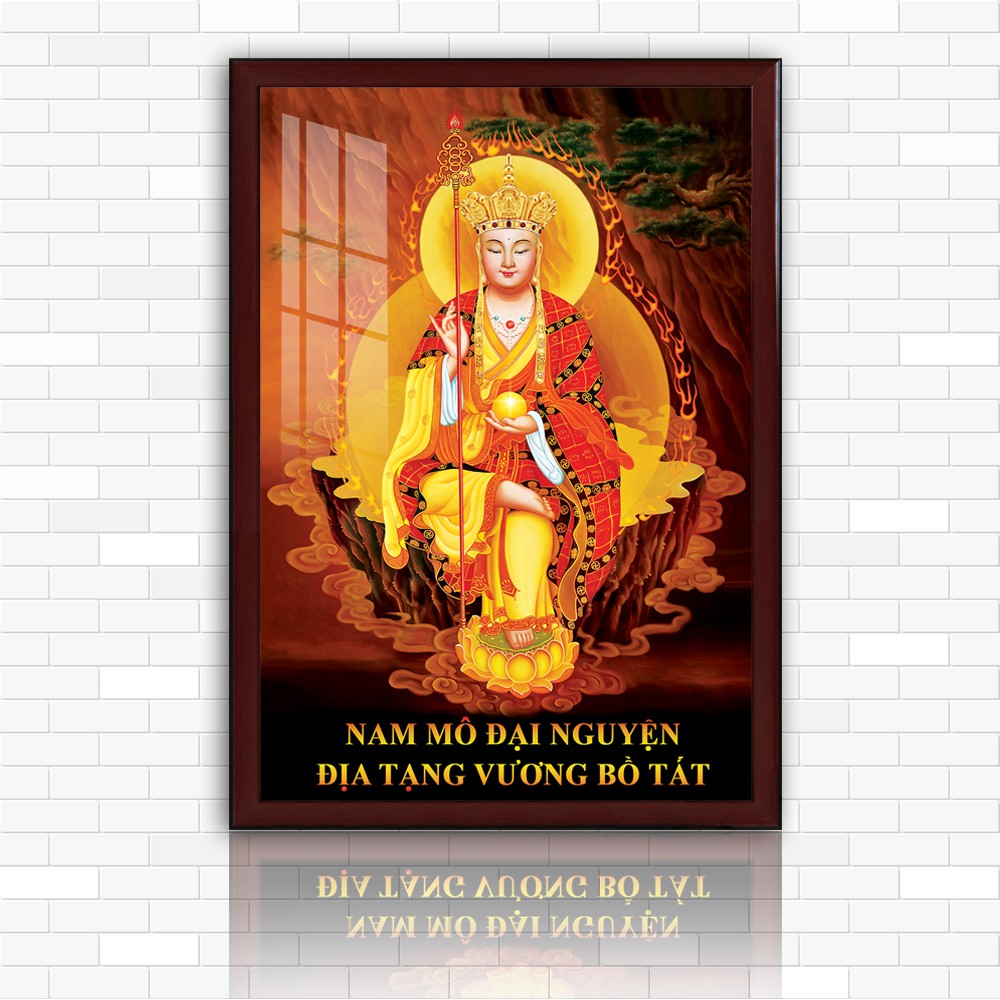 Tranh Điện Phật giáo - Địa Tạng Vương Bồ Tát, kính cường lực cao cấp,nhiều kích thước, có sẵn phụ kiện treo tranh
