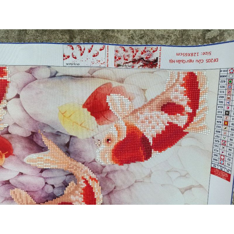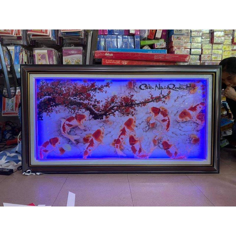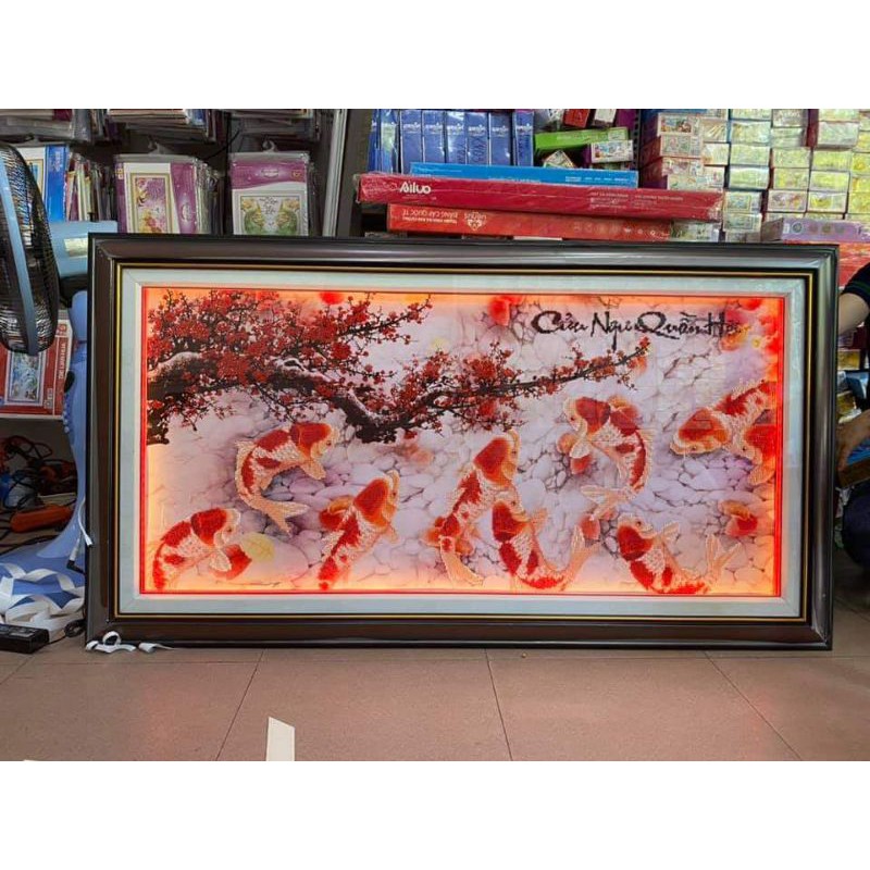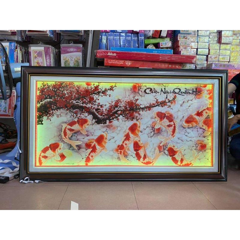 (Tranh đính sẵn giá thanh lý) Tranh đính đá cá chép cành đào