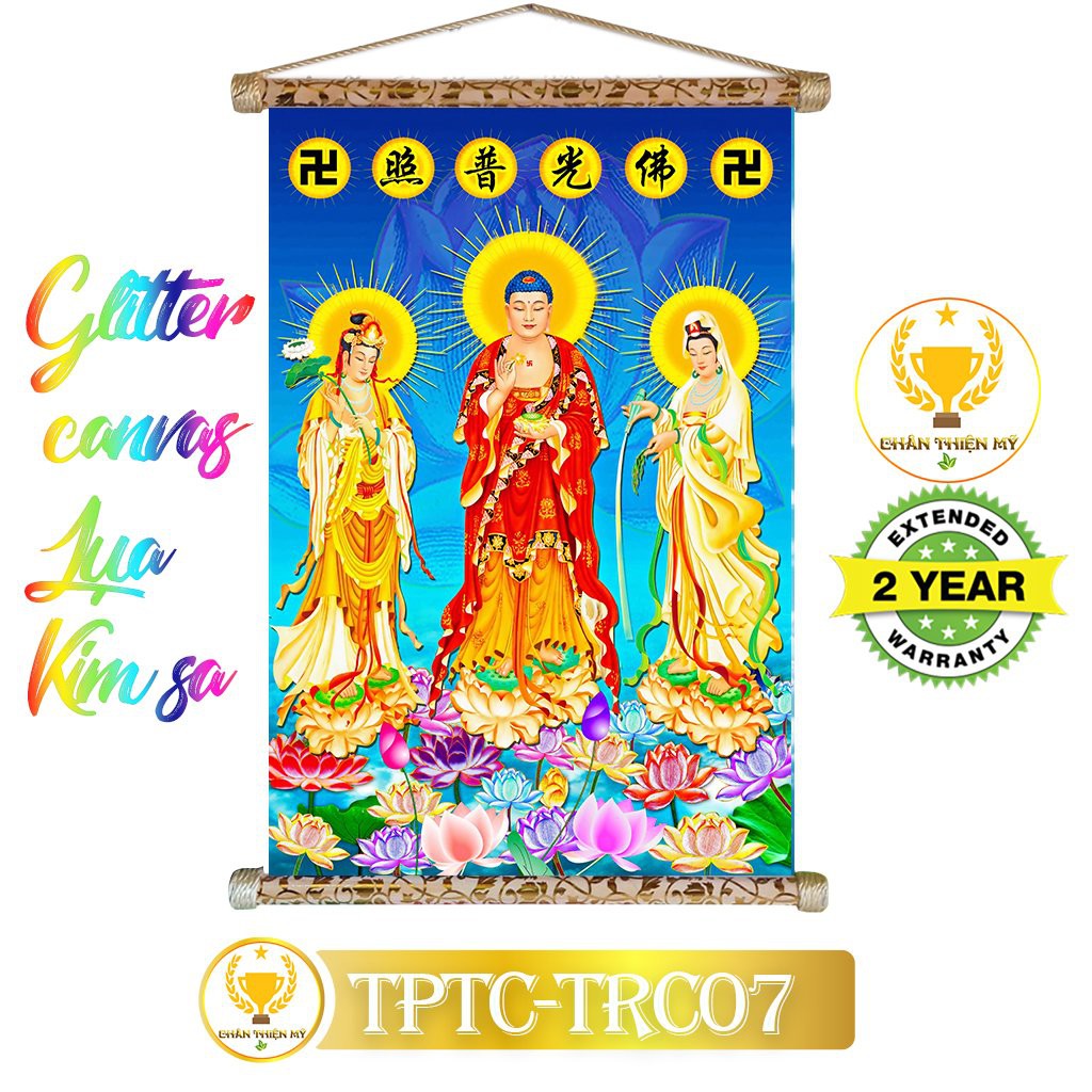 [Xả kho ]Tranh Lụa Kim Sa Tam Thế Phật 40x60cm
