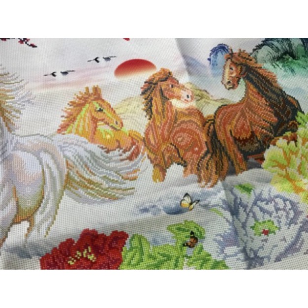 Tranh thêu chữ thập mã đáo thành công 8 con ngựa 3D Ailuo AL53458 AL53589_chưa thêu
