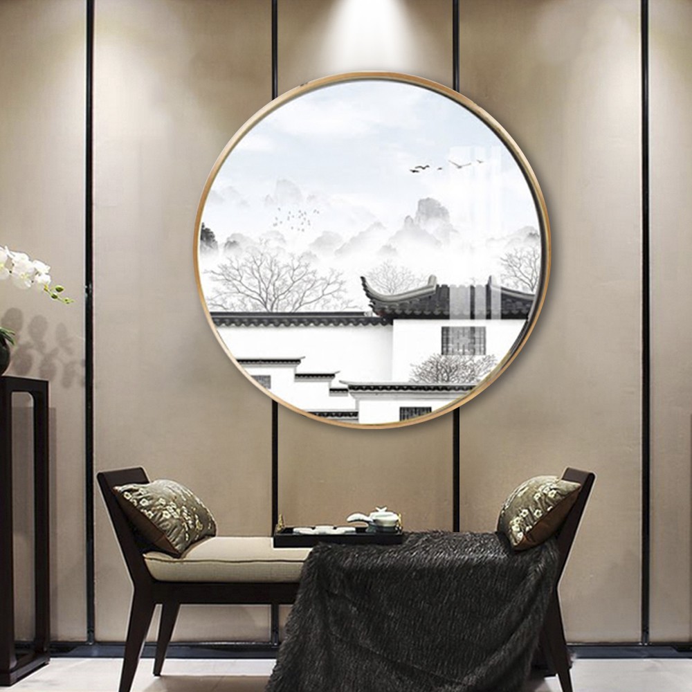 Tranh tròn tráng gương phong thủy cho phòng khách phòng ngủ - Tranh treo tường cao cấp lau chùi dễ dàng tặng kèm đinh