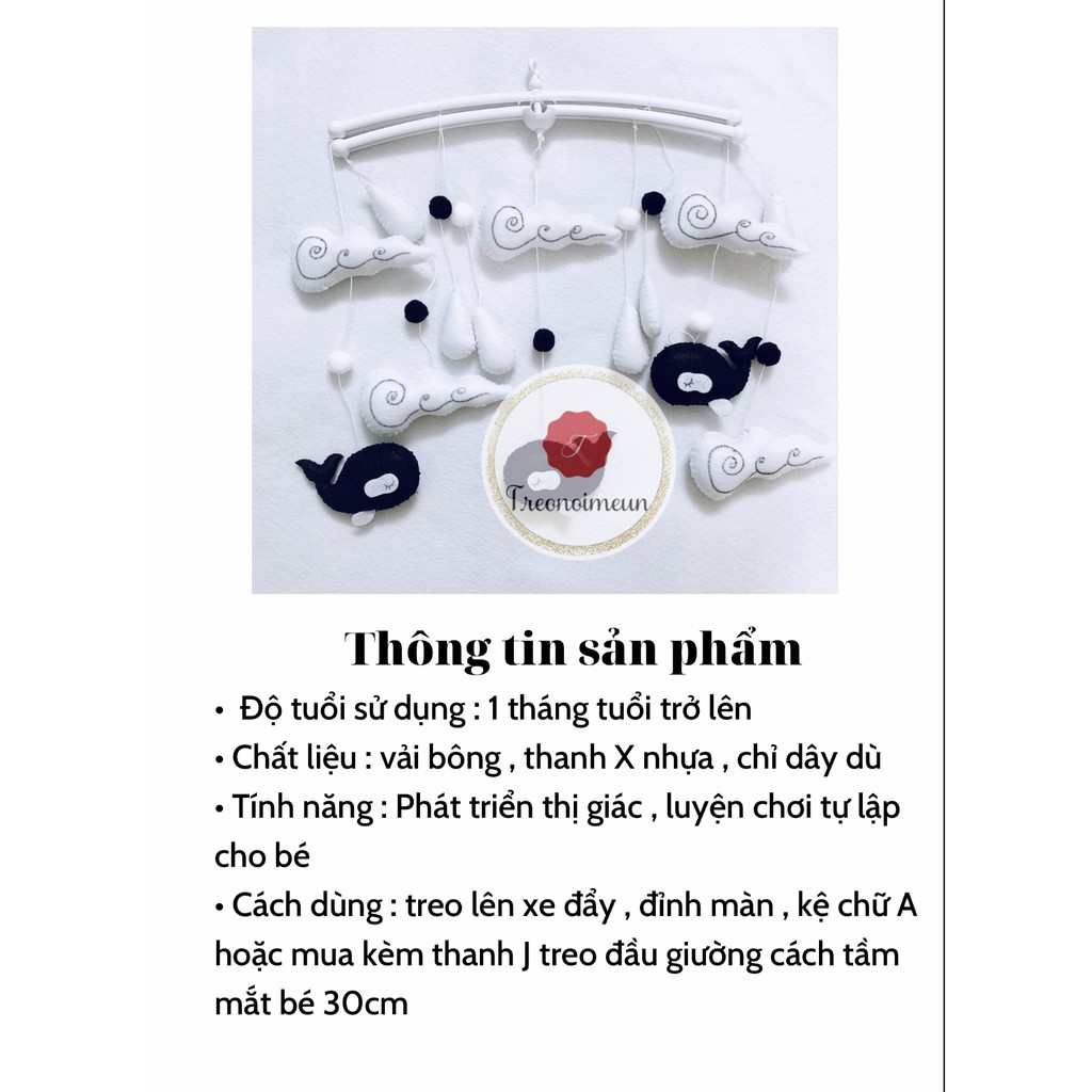 Đồ chơi treo nôi cũi đen trắng kích thích thị giác cho bé sơ sinh ảnh thật 100%, tự xoay phát nhạc Mẫu Cá voi