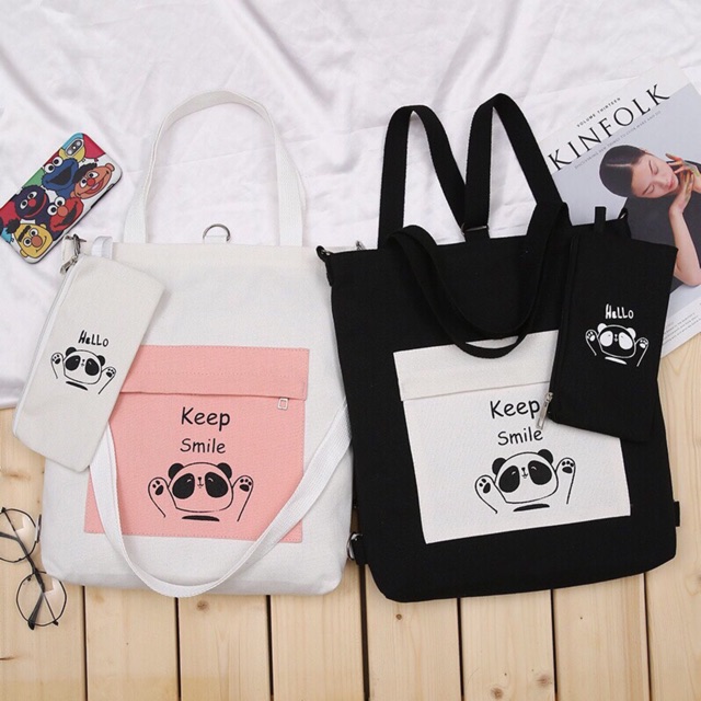 [TRỢ GIÁ] Túi ToTe phối màu thời trang hình gấu kiểu mới chữ KEEP SMILE ví hello gấu có khoá kéo vừa A4 style KITI SHOP