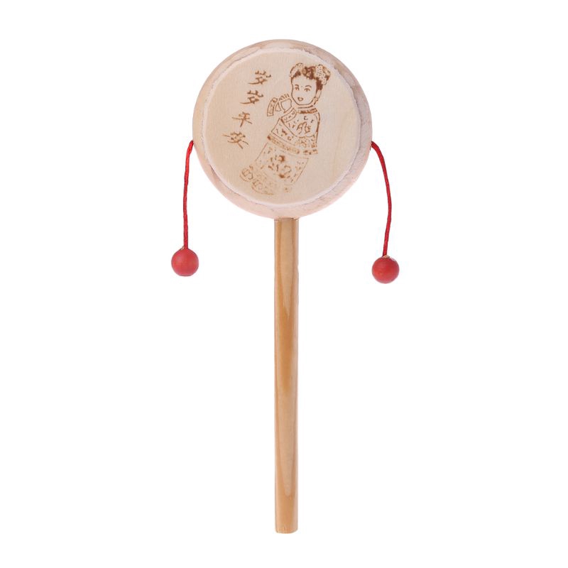 Cartoon Chinese Traditional Spinning Rattle Drum Hand Bell Baby Musical Toy