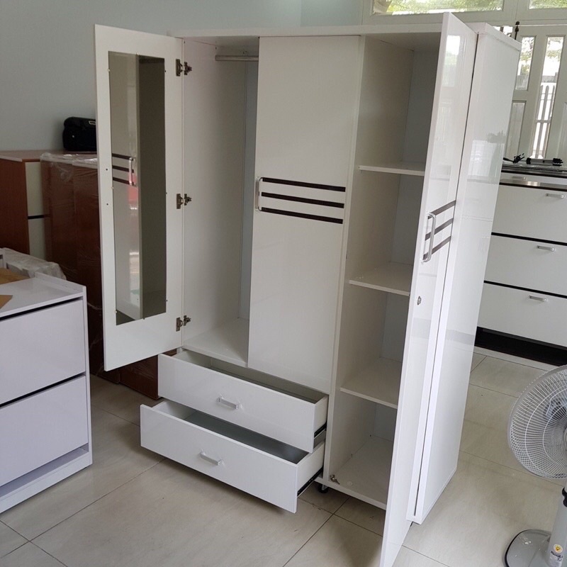 Tủ Quần Áo 3 Cánh CÓ GƯƠNG Nhựa Đài Loan, MIRA HOUSE Có Lắp Đặt, Cao 1m85 dài 1m25 sâu 50cm