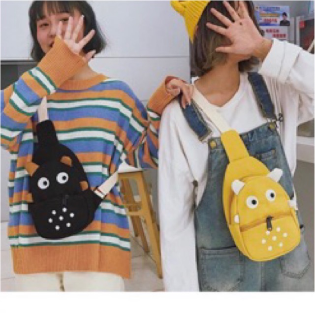 Túi đeo chéo vải thô 4 màu siêu dễ thương