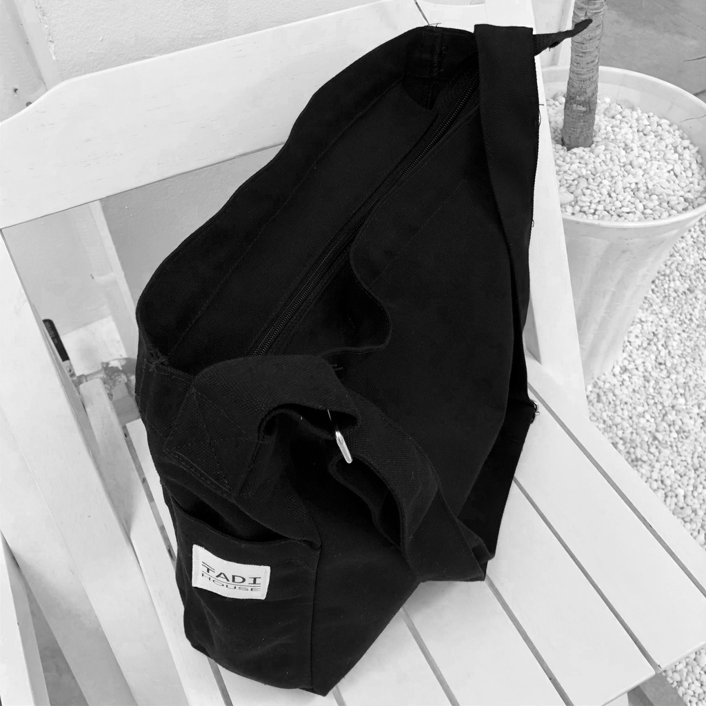 Túi Tote Đeo Chéo Vải Bố Canvas Mộc Unisex Vintage Tadi House Màu Đen Và Màu Trà Sữa