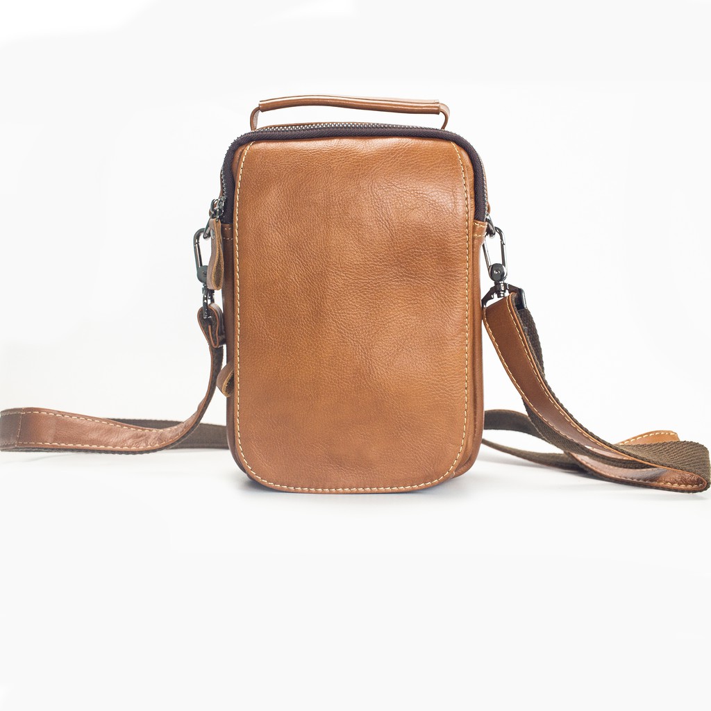 Túi đeo chéo mini nam DC104, minibag da bò thật đựng vừa ipad mini, các vật dụng cá nhân phong cách unisex, BH 12 tháng