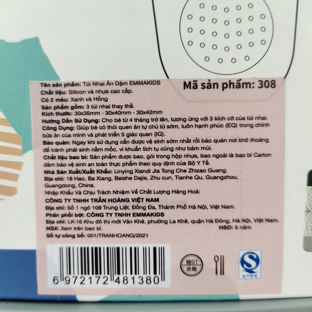 Túi Nhai Ăn Dặm Cho Bé 💖𝑭𝑹𝑬𝑬𝑺𝑯𝑰𝑷 💖 Dụng Cụ Ăn Dặm Cho Bé Emma Kids Cao Cấp (Kèm 3 Núm Nhai)