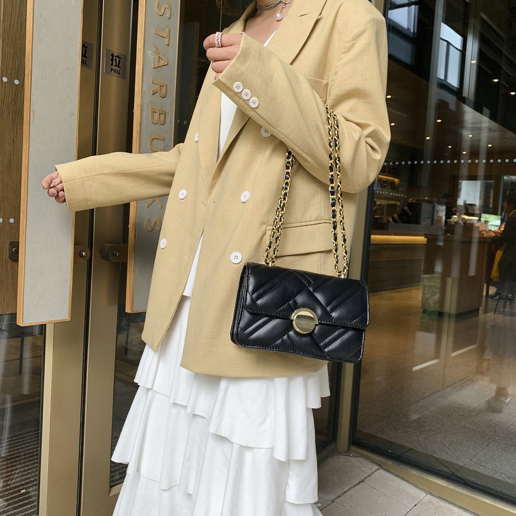 Túi nữ đeo chéo viền chỉ khóa tròn dây cách điệu sang chảnh_T1078
