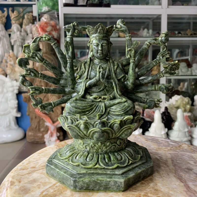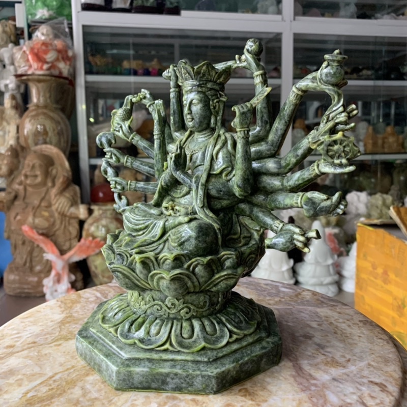 Tượng Phật Chuẩn Đề Đá Đúc Ngọc Ấn Độ - cao 23cm, ngang 25cm