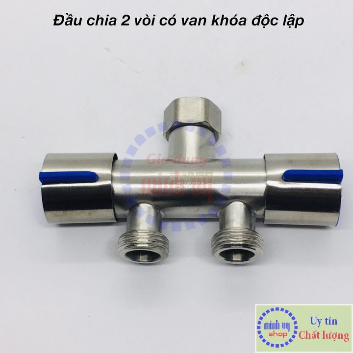 Van Nước 2 cổng xả có điều khiển (xanh) riêng biệt dạng vòi chia nước - đầu ra 21mm Inox VC2xanhthang