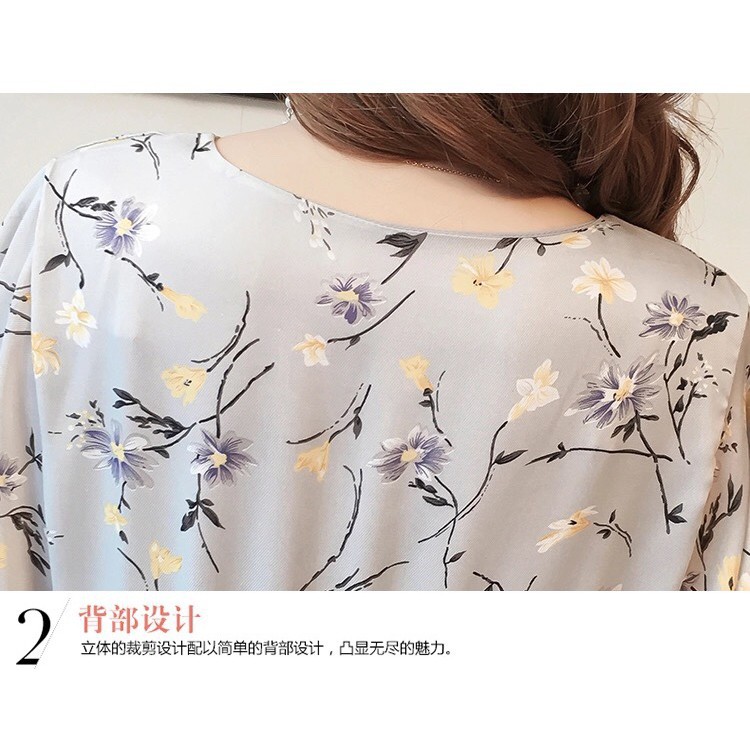 Váy bầu (Đầm bầu) voan lụa hoa xanh cao cấp hè 2019
