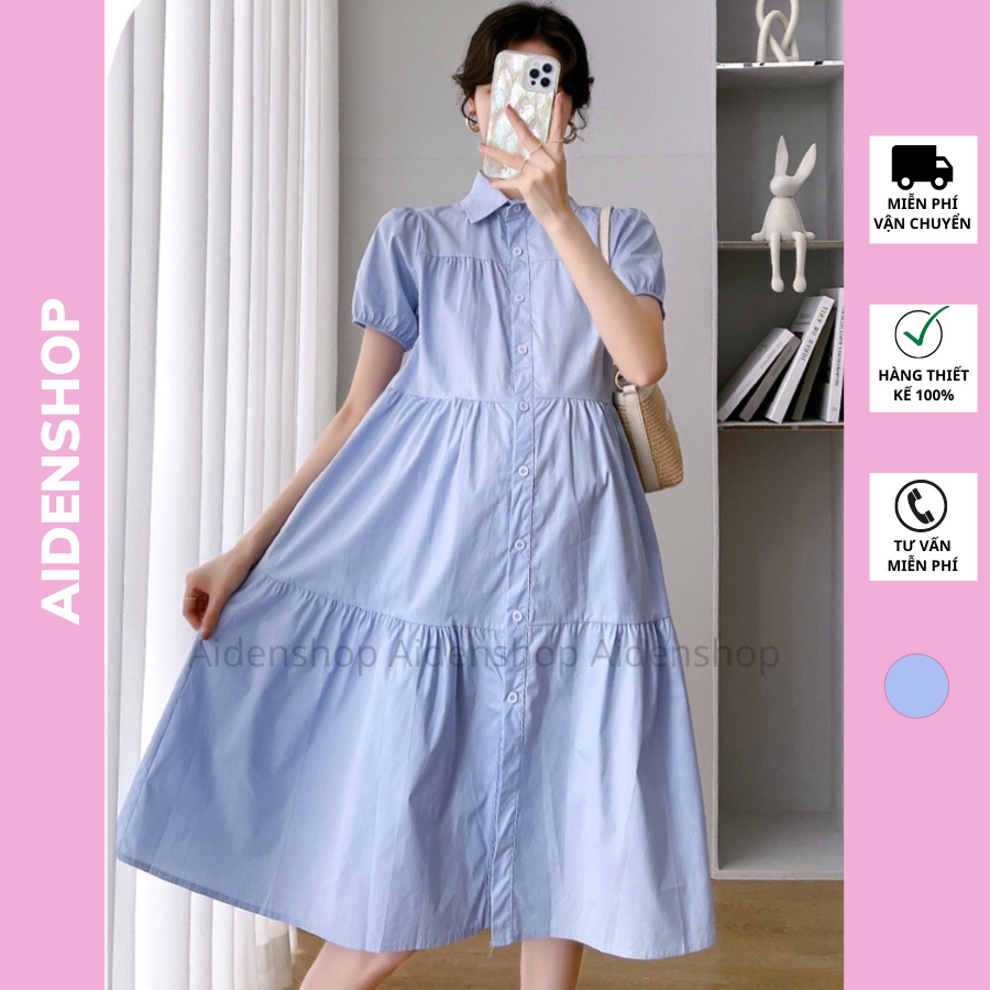 Váy bầu suông xinh sơ mi Aidenshop đầm bầu công sở sau sinh dài 45-75kg