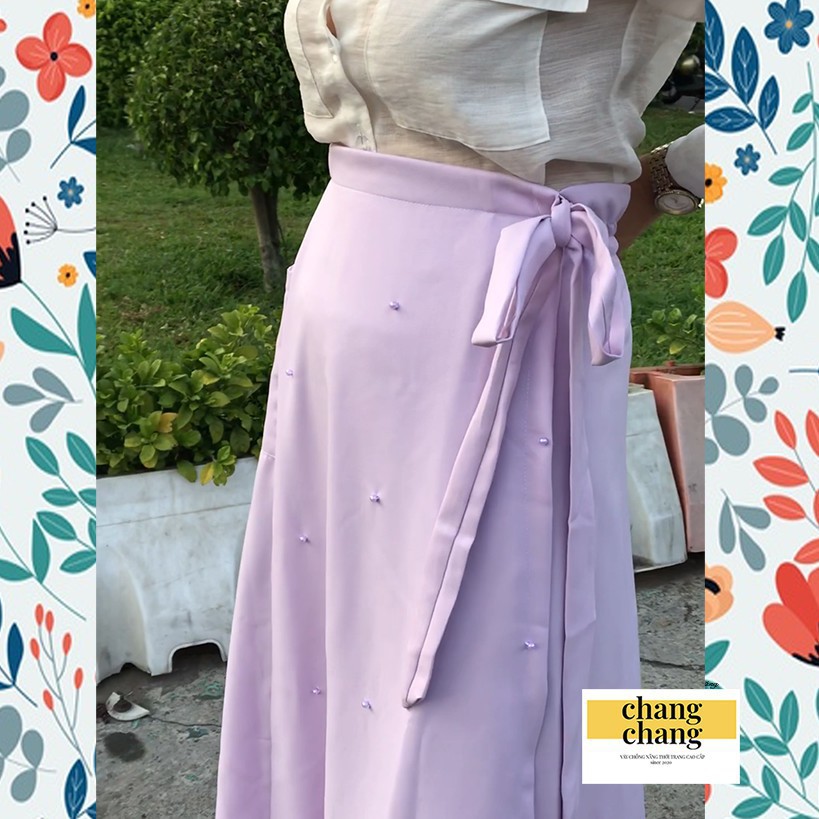 Váy Chống Nắng Dễ Thương Thời Trang Lưng Thun Cúc Sau | Tím Cột Nơ Đính Hột | Chang Chang