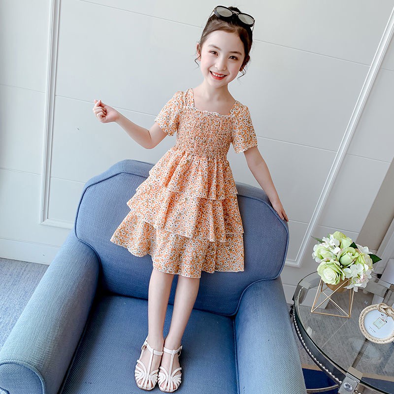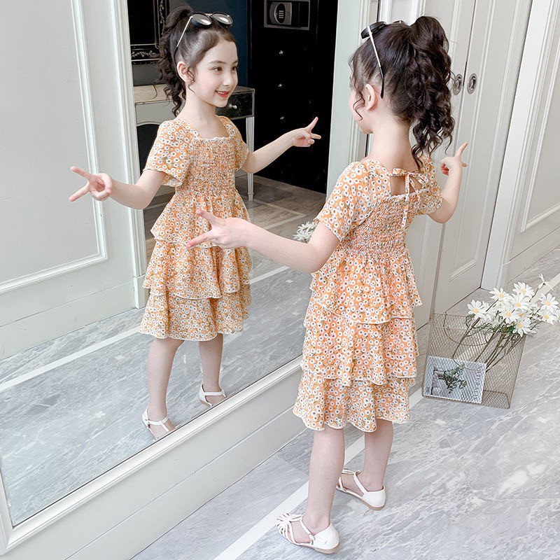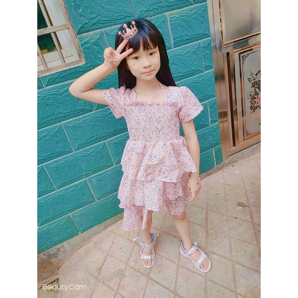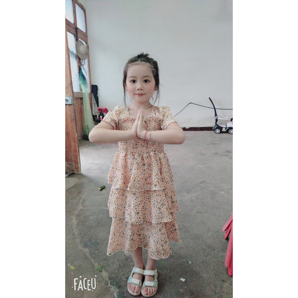 Váy hoa nhí cộc tay nhiều tầng cho bé gái (N00710)