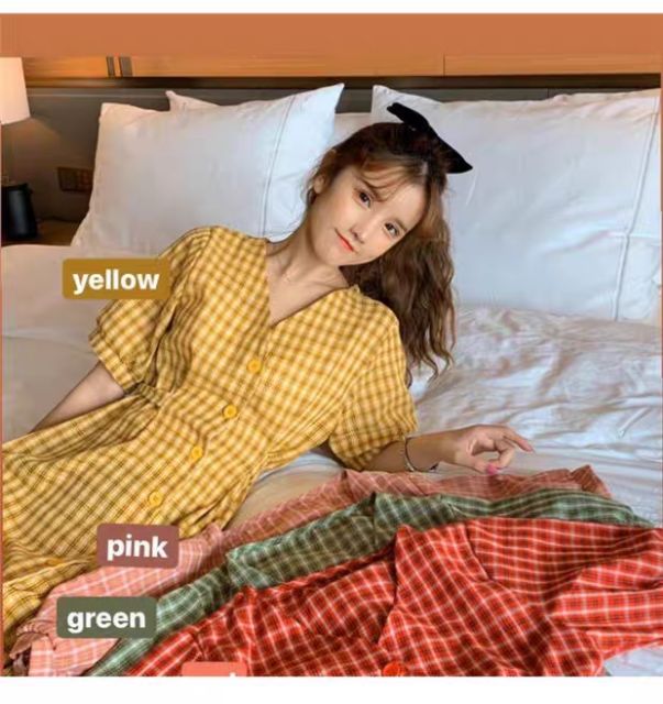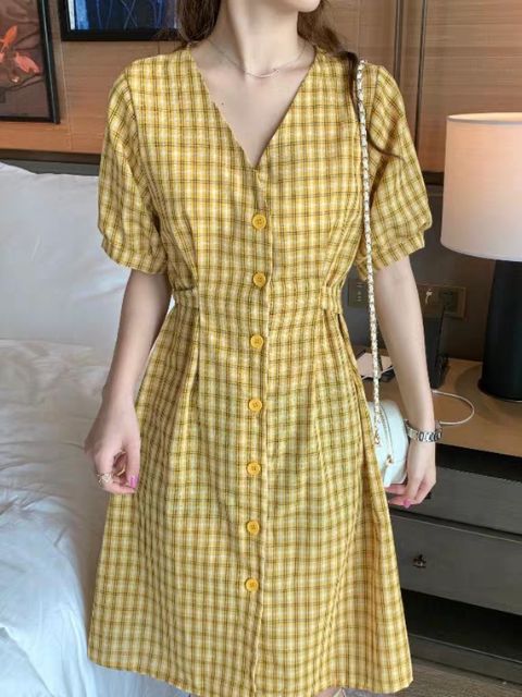 Váy kẻ caro thắt lưng eo