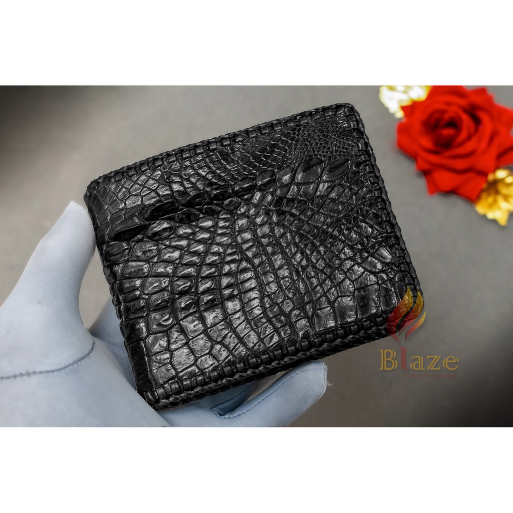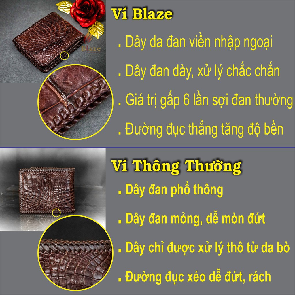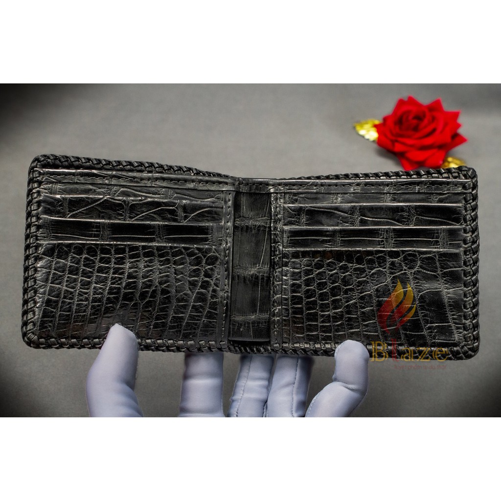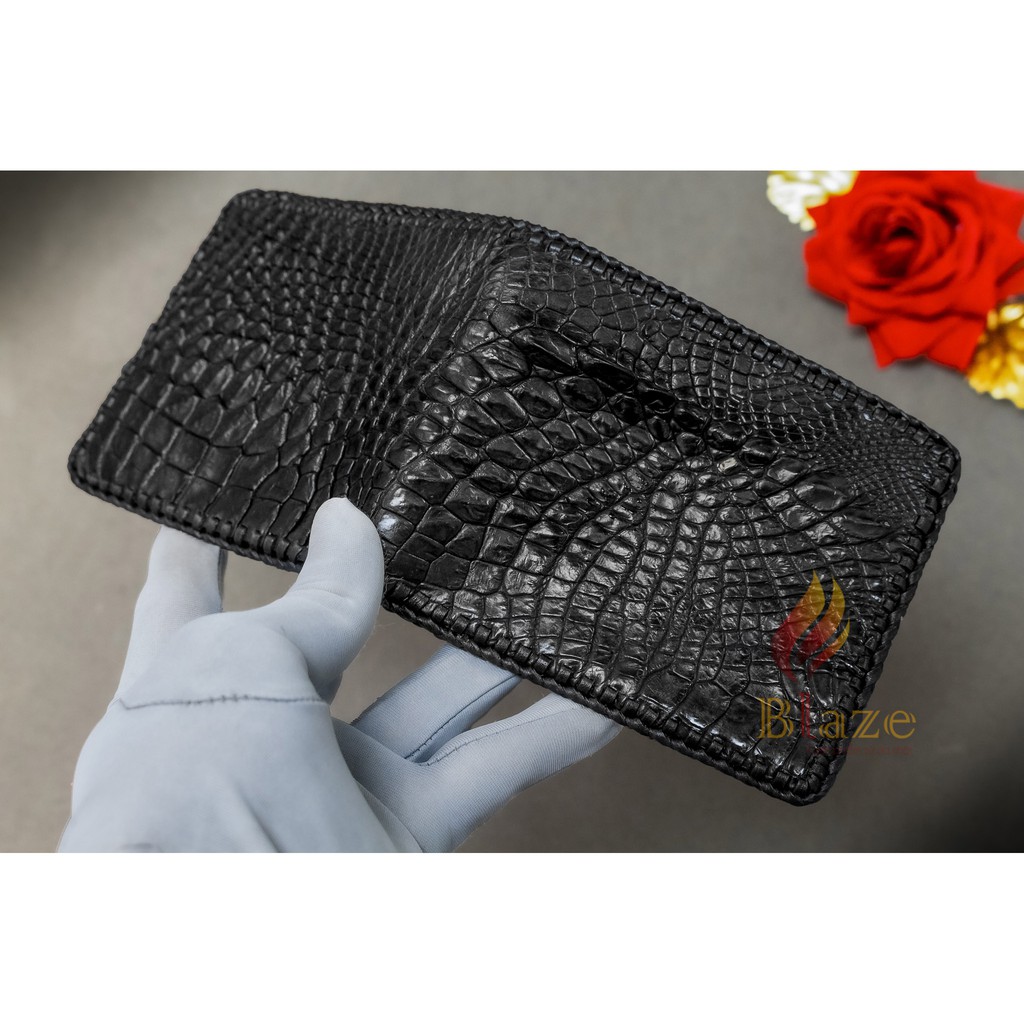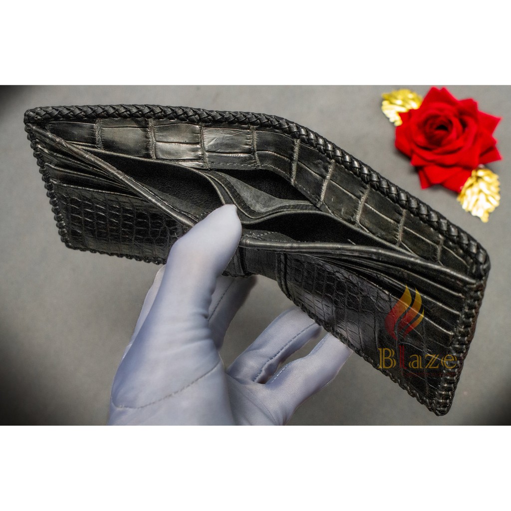 Ví Da Cá Sấu 2 Mặt Đan Viền Vân Vảy - Bóp Da Cá Sấu Đan Viền Cao Cấp BLAZE | Ngang | Nâu